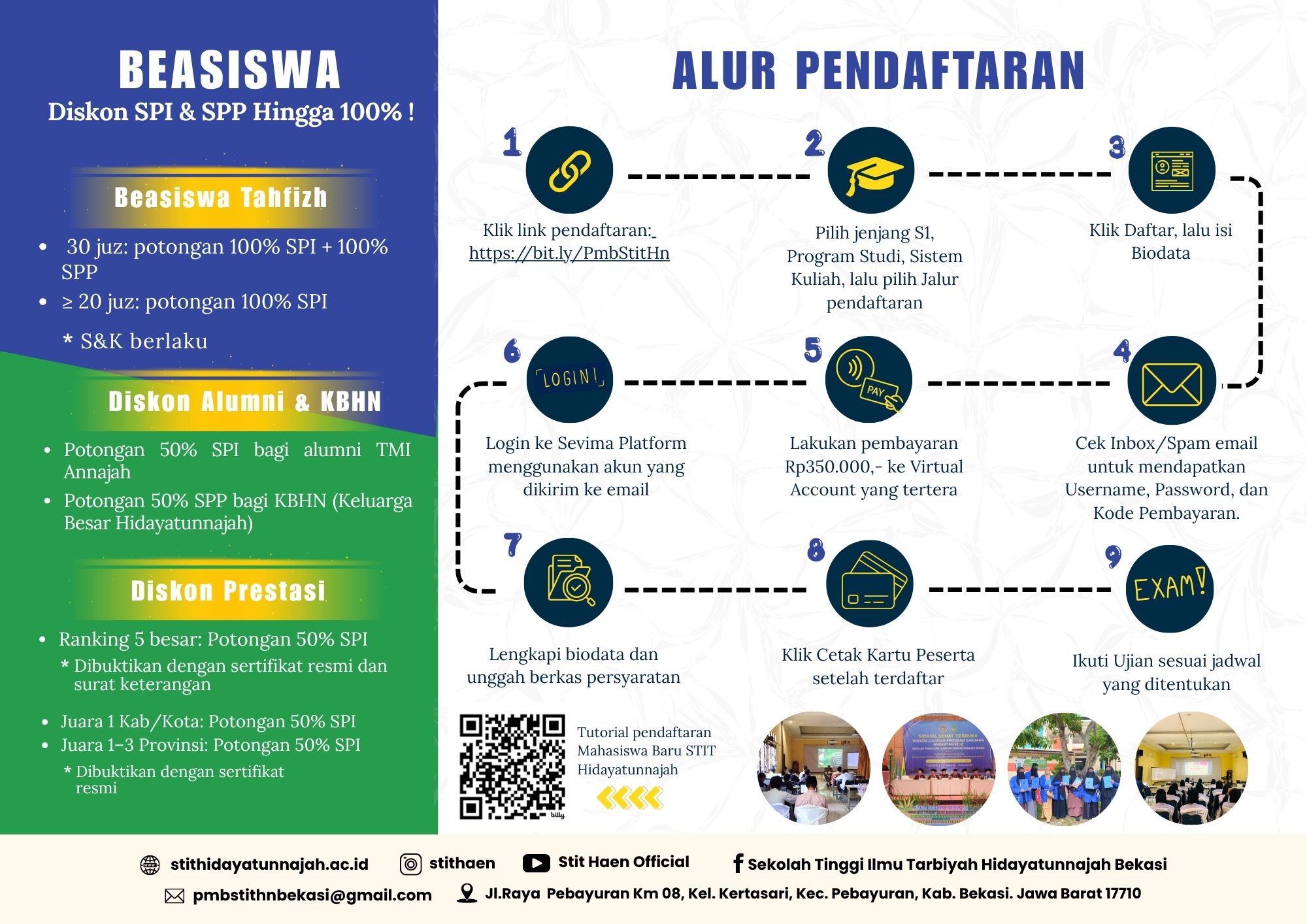 STIT HIDAYATUNNAJAH BEKASI menyediakan beasiswa penuh bagi para penghafal Al-Qur’an 30 Juz, dengan syarat hafalan akan diuji kembali.