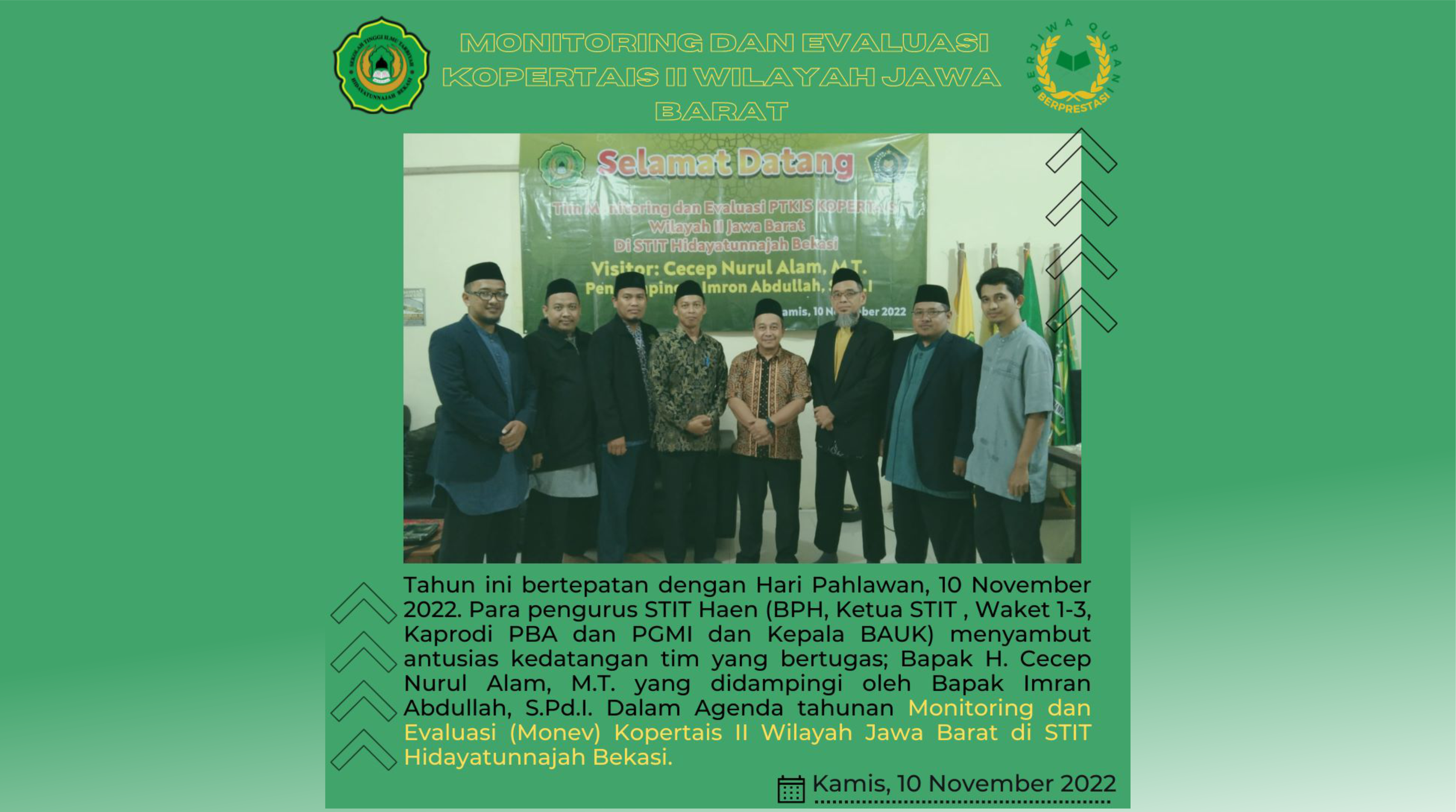 Monitoring dan Evaluasi (Monev) Kopertais II Wilayah Jawa Barat Secara Digital Di Sekolah Tinggi Ilmu Tarbiyah Hidayatunnajah Bekasi Agenda tahunan Monitoring dan Evaluasi (Monev) Kopertais II Wilayah Jawa Barat di Sekolah Tinggi Ilmu Tarbiyah Hidayatunnajah Bekasi (STIT Haen) tahun ini bertepatan dengan Hari Pahlawan, […]